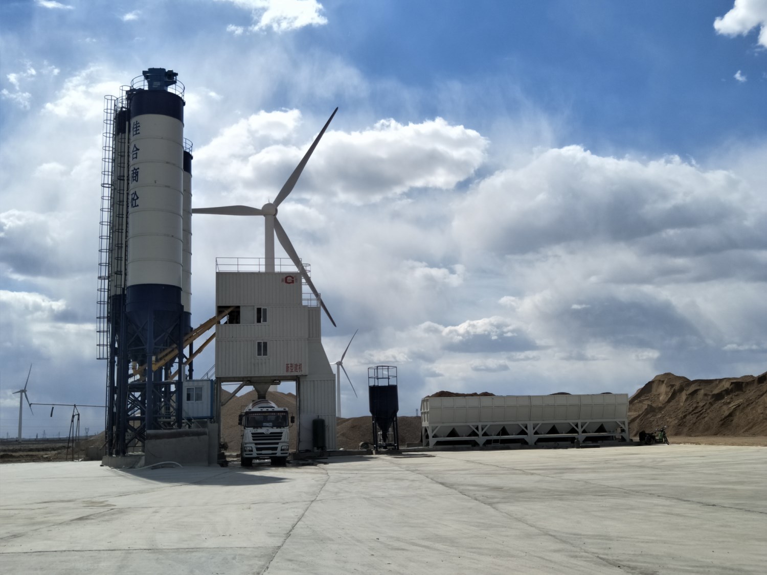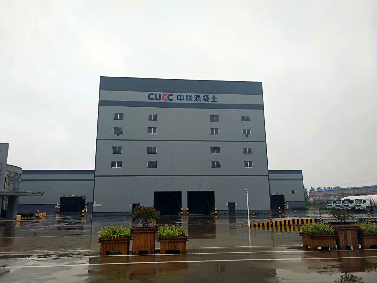 2、混凝土攪拌站(樓):由供料、貯料、配料、攪拌、出料、控制等系統及結構部件組成,用于生產混凝土的成套設備。