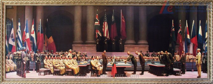 1945年9月2日,日本向盟軍投降儀式在東京灣密蘇里號軍艦上舉行。在包括中國在內的9個受降國代表注視下,日本在 投降書上簽字。這是中國近代以來反侵略歷史上的次全面勝利,也為世界反法西斯戰爭的勝利做出了巨大貢獻。